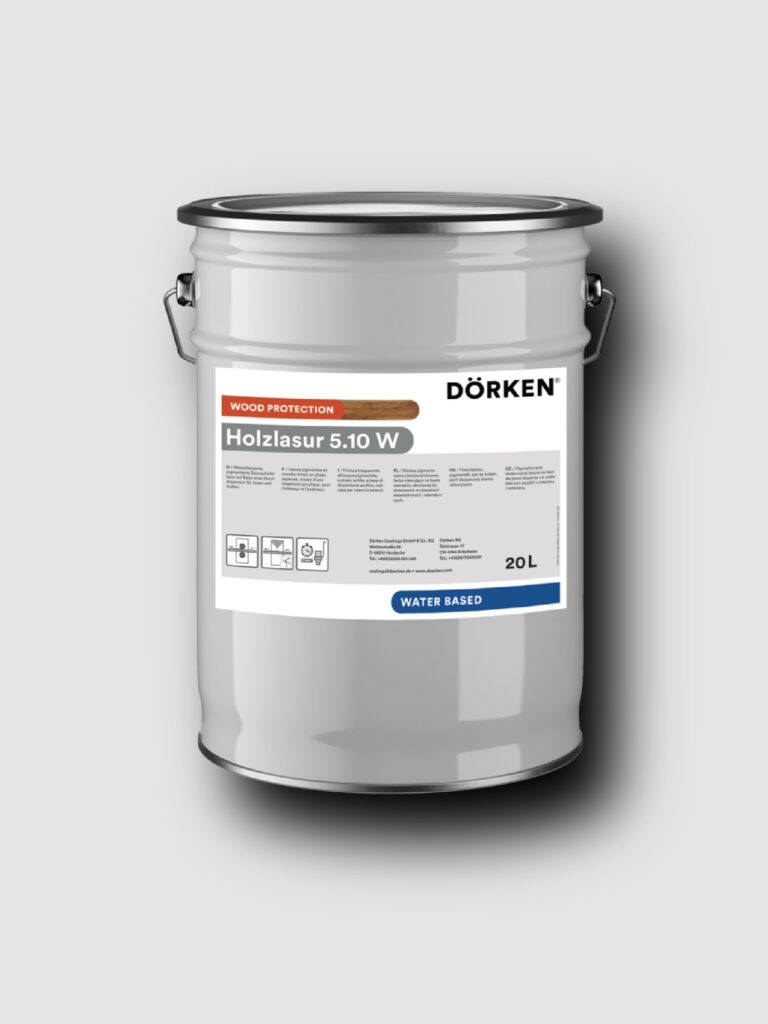 Wodorozcieńczalna lazura do drewna DORKEN Holzlasur 5.10 należy do serii  Woodprotection, która zapewnia kompleksową ochronę drewna i z powodzeniem wykorzystywana jest w stolarstwie, ciesielstwie, stolarce otworowej oraz do domów z drewna. Od lat cieszy się uznaniem niemieckich fachowców.